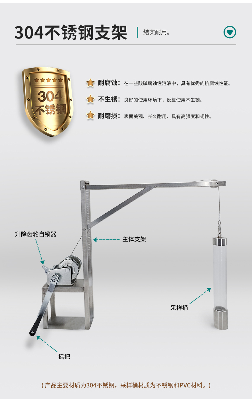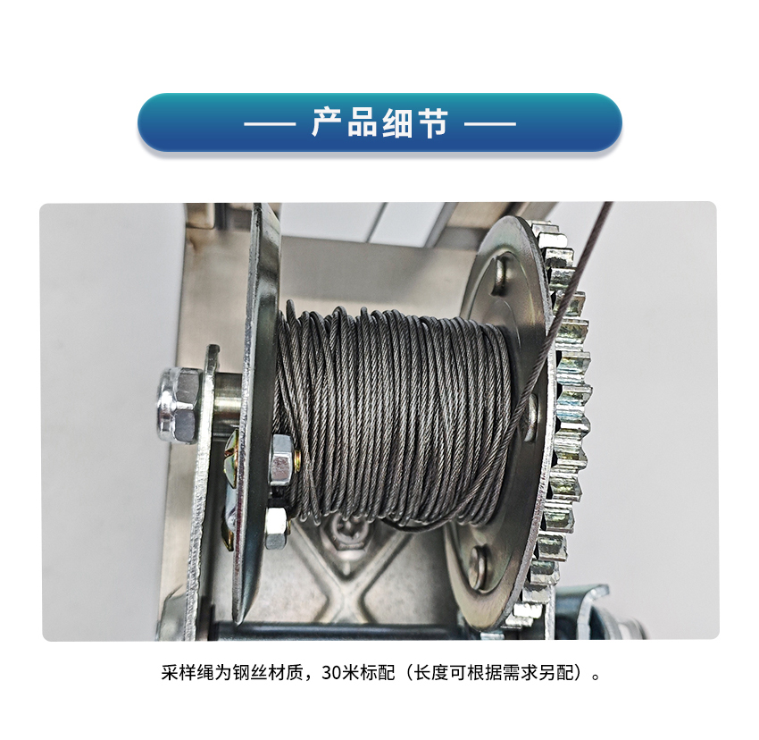 1. 取样绳长:采样绳为钢丝材质,标配30米(长度可根据需求另配)。