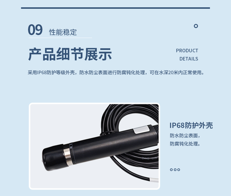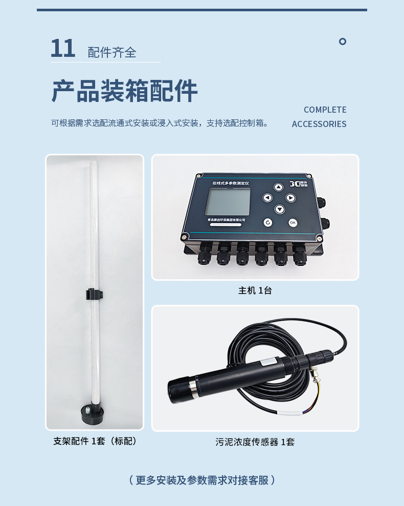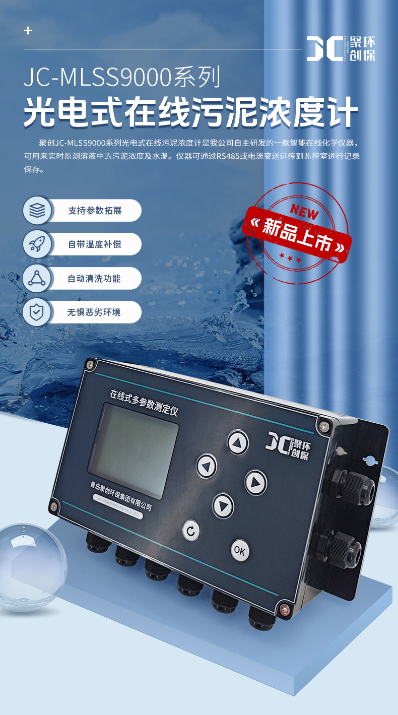 聚创JC-MLSS9000型在线污泥浓度计是为测量市政污水或工业废水处理过程中悬浮物浓度而设计的在线分析仪表。无论是评估活性污泥和整个处理过程、分析净化处理后排放的废水,还是检测不同阶段的污泥浓度,仪器都能给出连续、准确的测量结果。