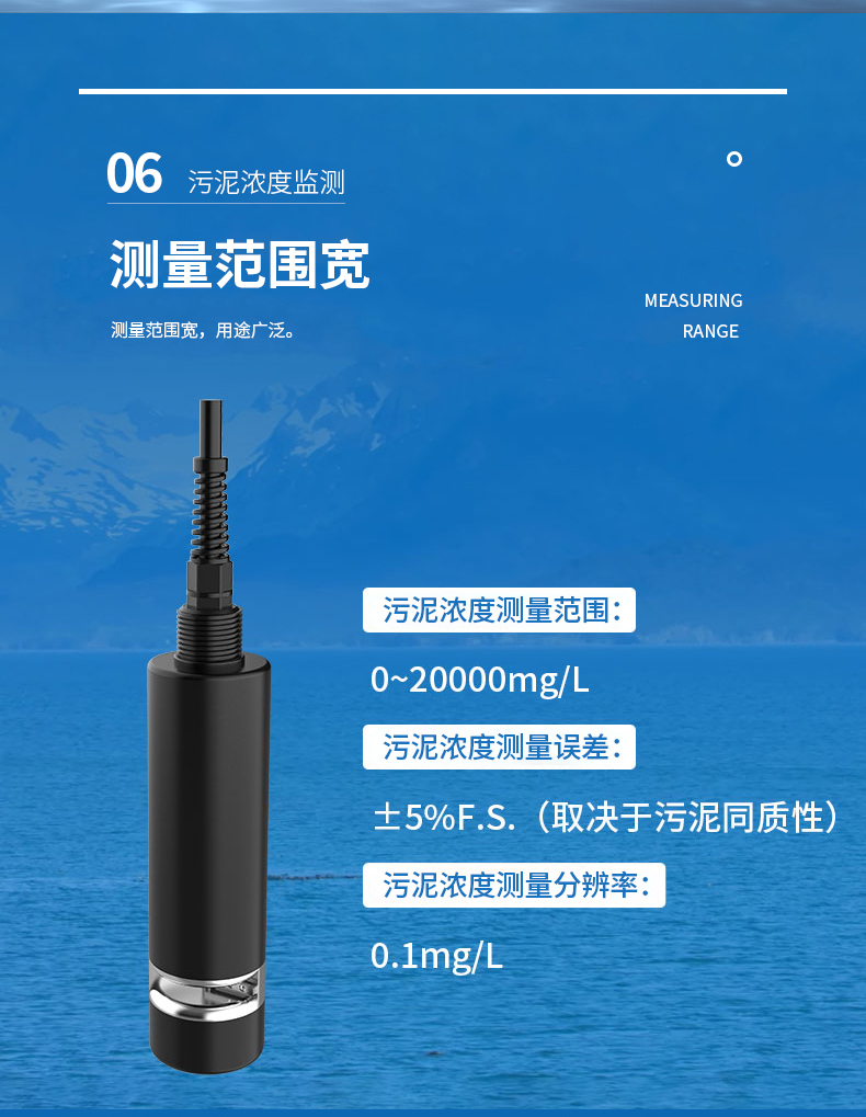 1.污泥浓度计出厂标定以更适合对射式测量方法的高岭土作为标准物进行标定,现场的实际数值应以现场测量环境的污泥配置标准溶液进行标定以确保污泥同质性;