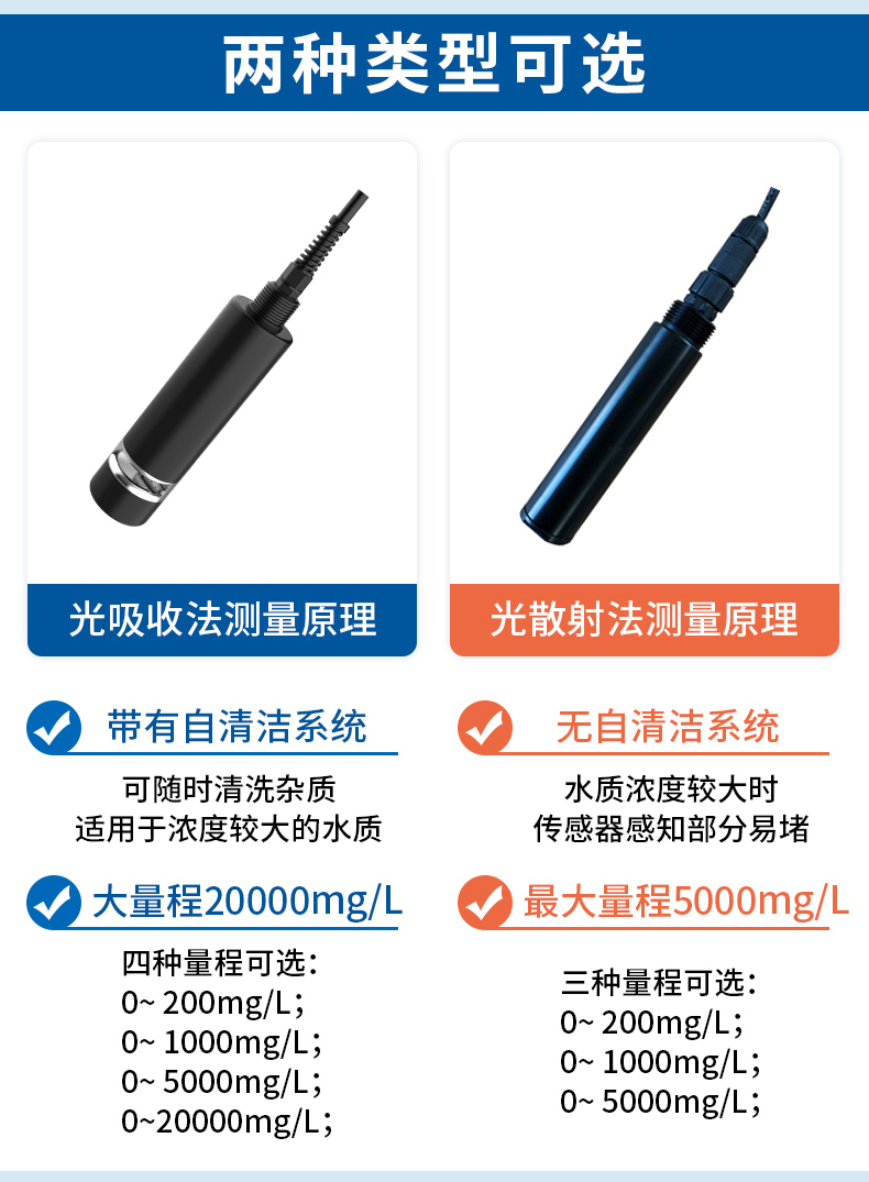 普通型 光散射法;自清洁型 光吸收法 |