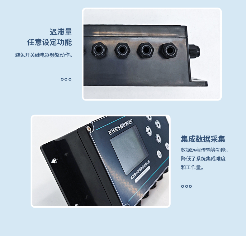 八组ON/OFF继电器接点 分为高点、低点报警输出,继电器滞后量任意设定,继电器最大负载30VDC/5A |