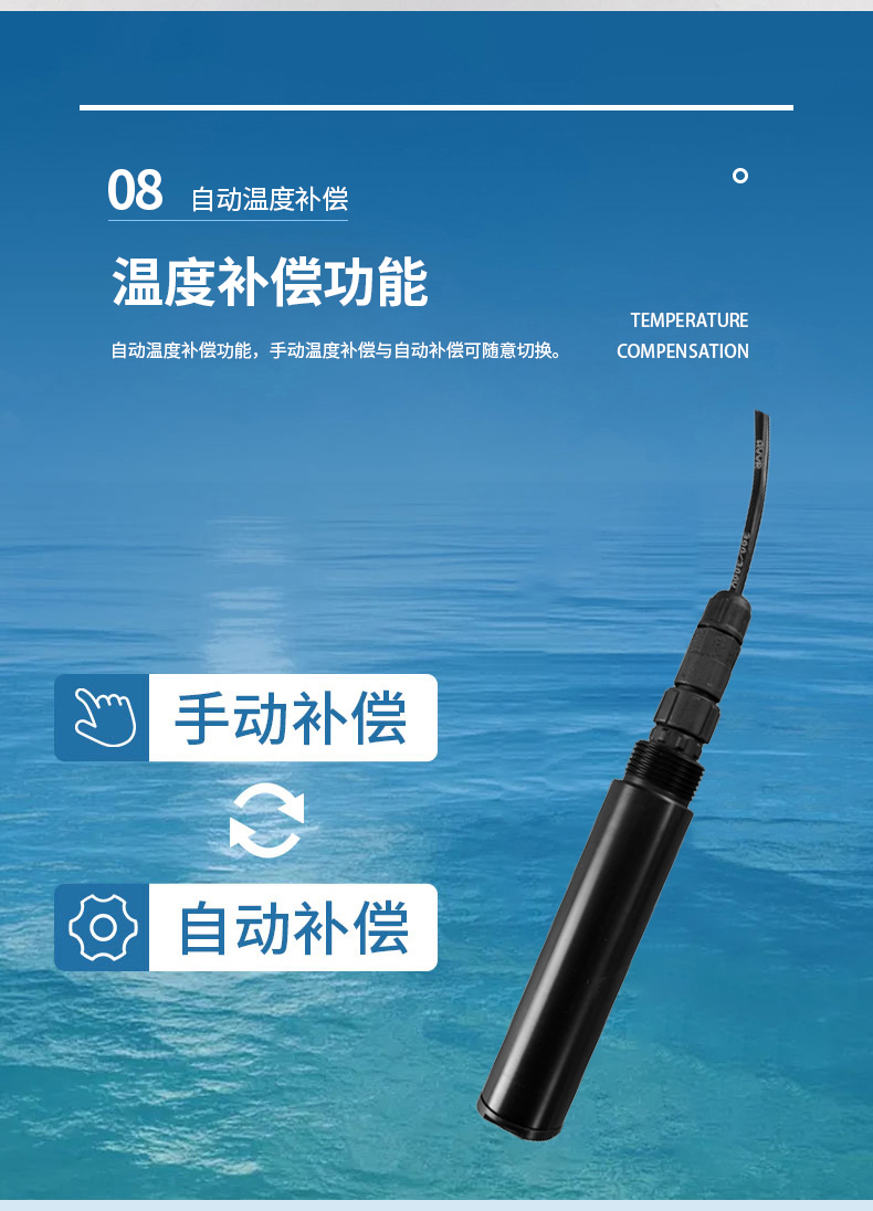 6.每次使用前应校准设备,长期在水体中使用时,建议每3个月校准一次,以保证仪器精度,校准频度应根据不同的应用条件适当调整(应用场所的脏污程度,化学物质的沉积等);