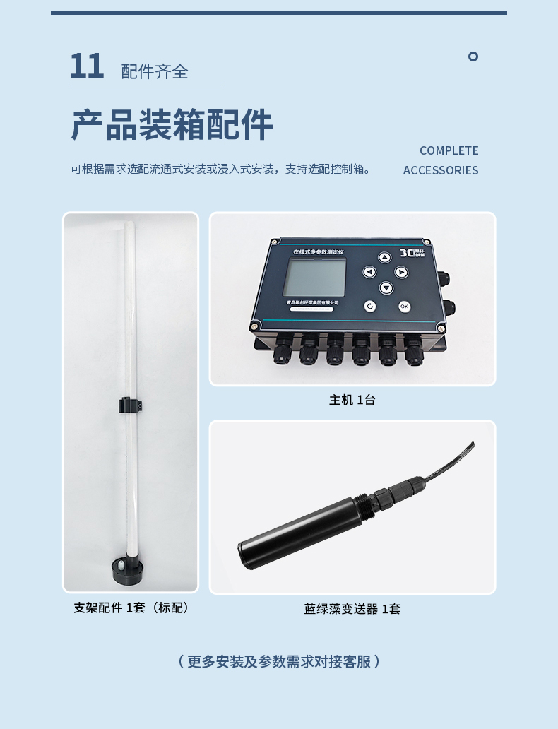 2.在线式蓝绿藻监测仪内部含有敏感的光学元件和电子部件,确保仪器不要受到剧烈的机械撞击。