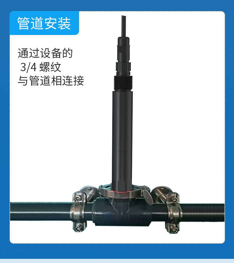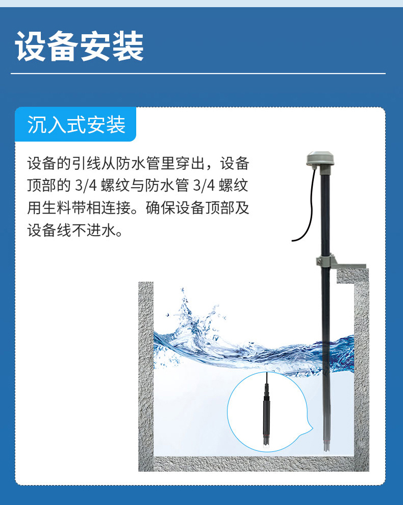 4.传感器应安装时应考虑水位变化,确保设备处于水位10cm以下,且需安装于水流缓慢无气泡的区域;