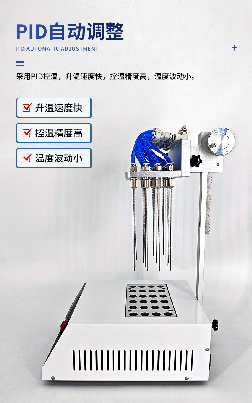 此设备采用金属浴加热方式,操作简便易行。整个系统可在通风柜中进行操作,这不仅降低了操作风险,还减少了水资源消耗与废水排放,符合环保相关要求。