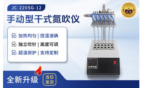 JC - 220SG系列干式氮吹仪是一款高效且安全的实验室样品浓缩设备。该设备集成了独立气针控制、气腔高度可调节、节约气体、超温保护以及液晶显示屏等诸多先进功能,能够快速地去除样品中的溶剂,有效缩短实验时间。