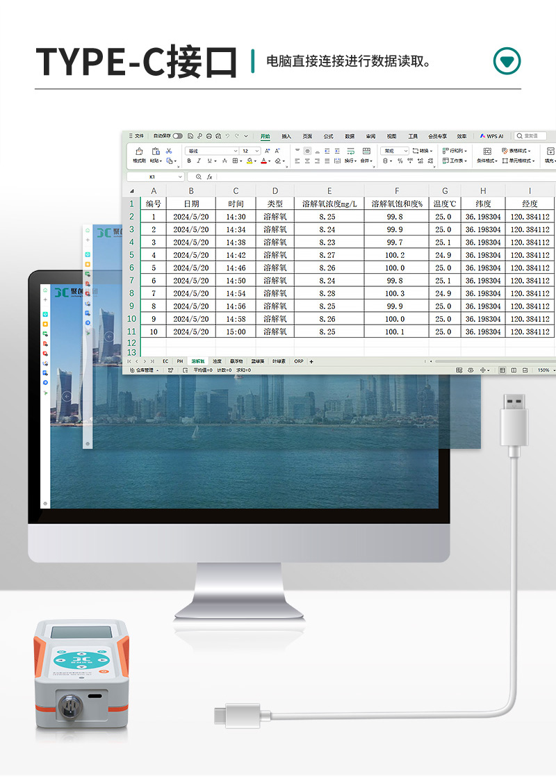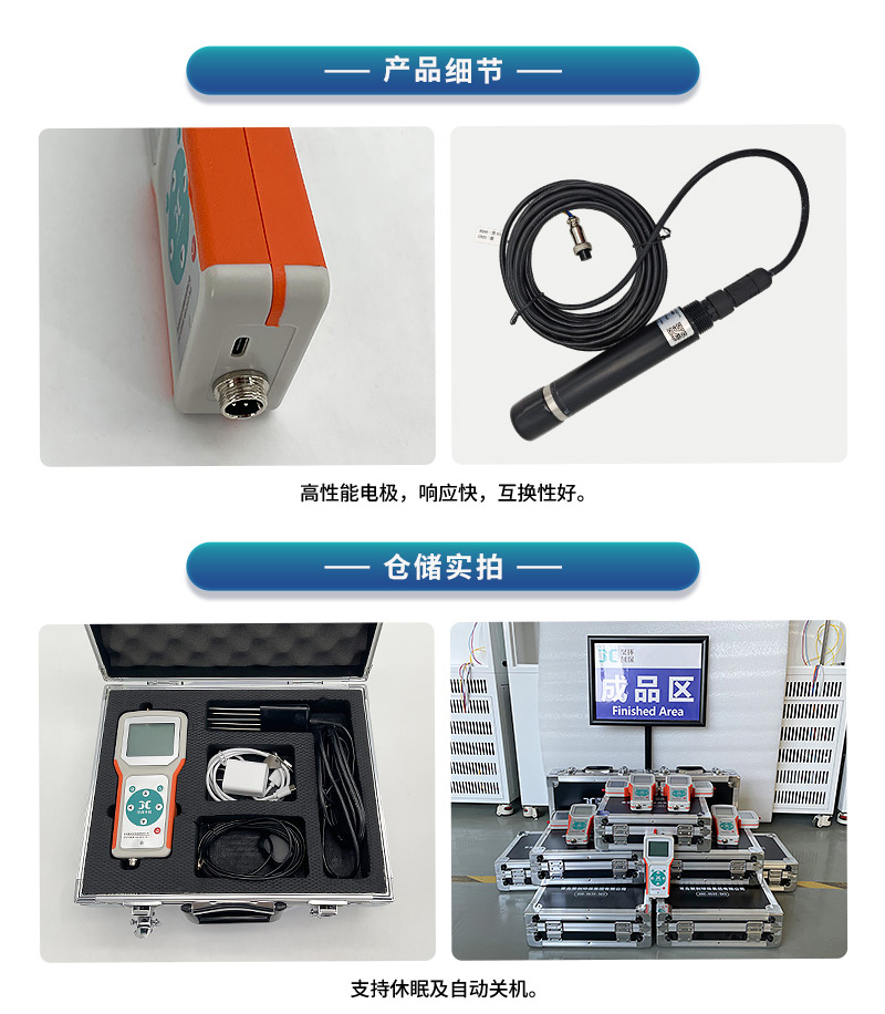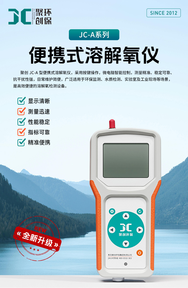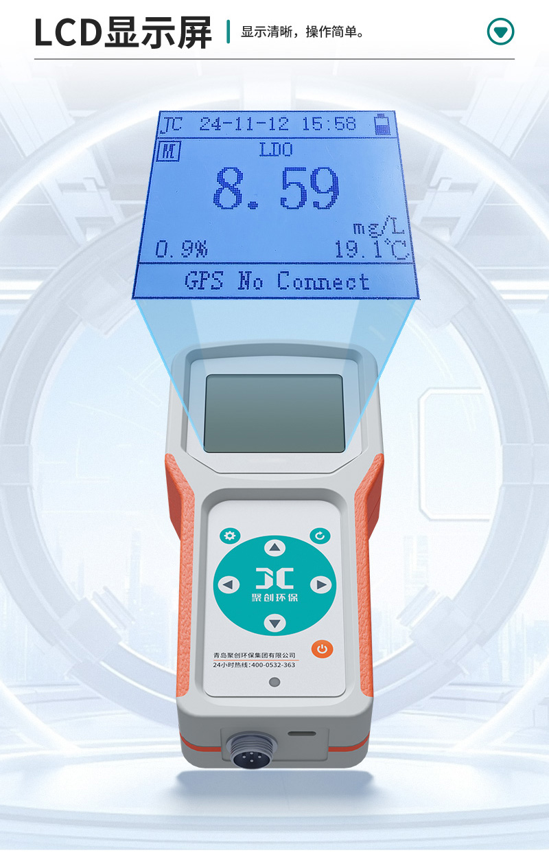 JC-A型便携式溶解氧仪符合标准HJ506 《水质 溶解氧的测定 电化学探头法》,采用全新的设计理念及先进的技术,由便携式主机以及荧光法溶解氧传感器组成。采用先进的荧光法测定原理,没有膜和电解液,基本无需保养,测量时不会产生氧消耗,没有流速/搅动要求。自带NTC温补功能,测量结果具有良好的重复性及稳定性。广泛适用于水处理、水体监测、制药、食品加工、农业灌溉等水质溶解氧测量。