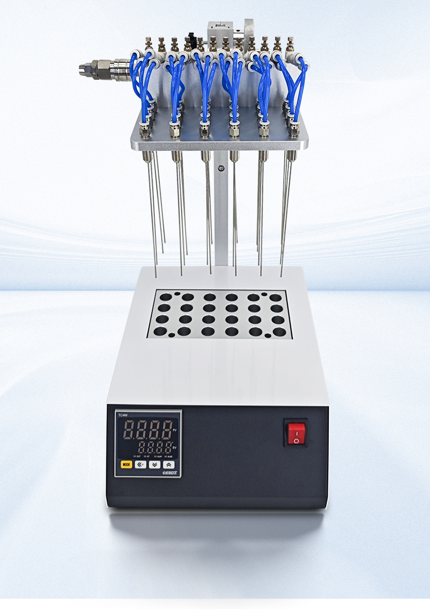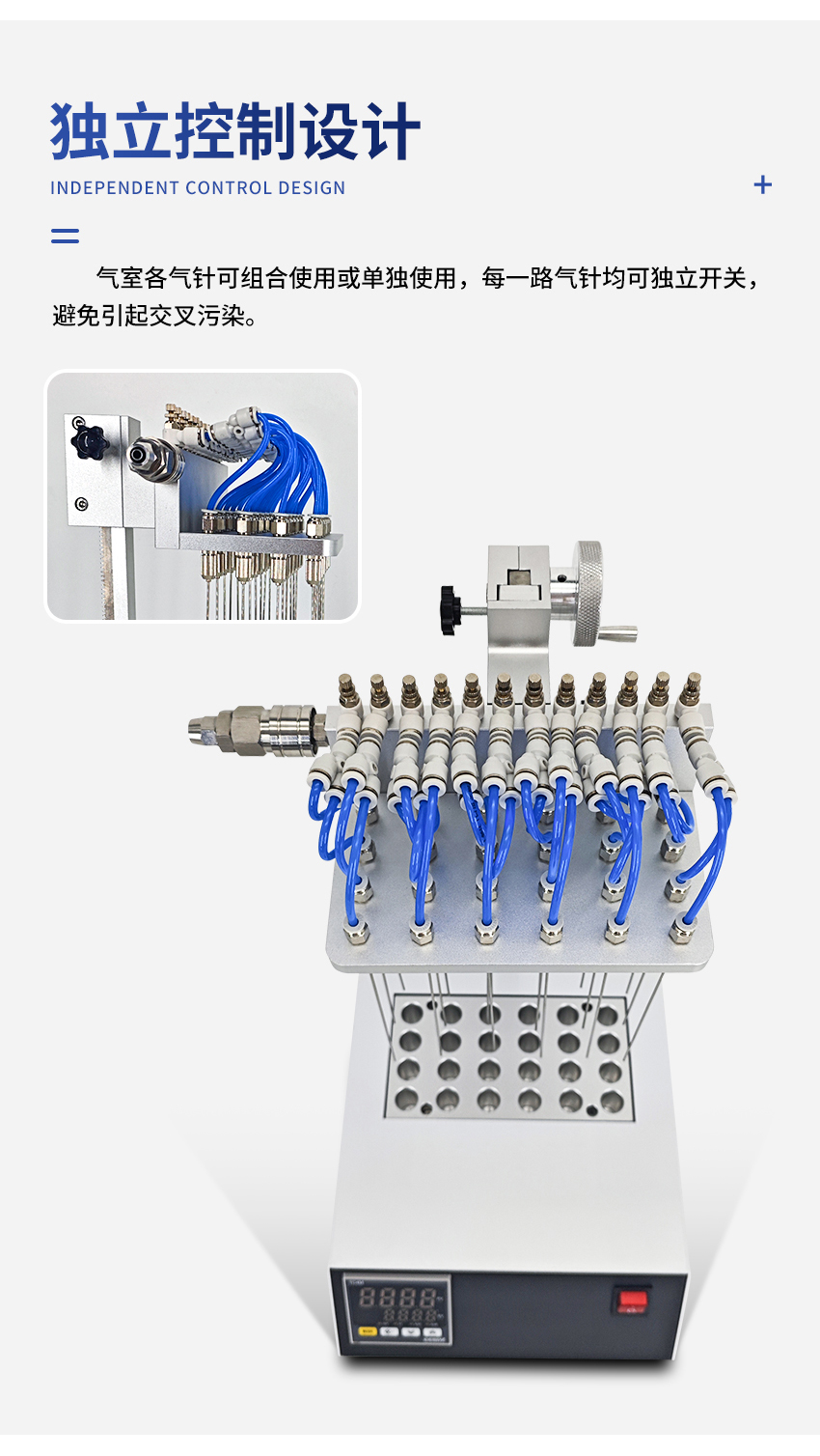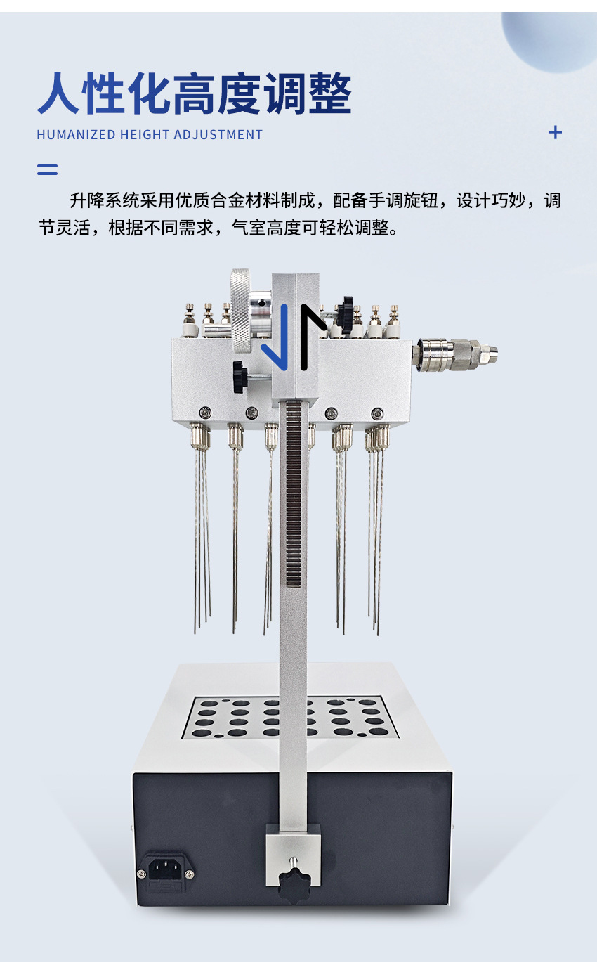 JC - 220SG系列干式氮吹仪是一款高效且安全的实验室样品浓缩设备。该设备集成了独立气针控制、气腔高度可调节、节约气体、超温保护以及液晶显示屏等诸多先进功能,能够快速地去除样品中的溶剂,有效缩短实验时间。