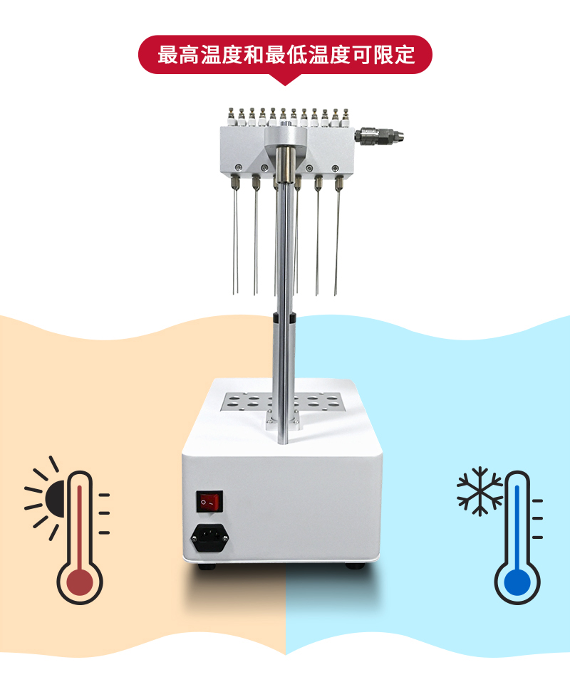 H - L212C/L224C型干式氮吹仪是一款高效且安全的实验室样品浓缩设备。该设备拥有独立气针控制、气腔高度电动调节、节约气体、超温保护以及液晶显示屏等一系列先进功能,可快速去除样品中的溶剂,有效缩短实验时间。