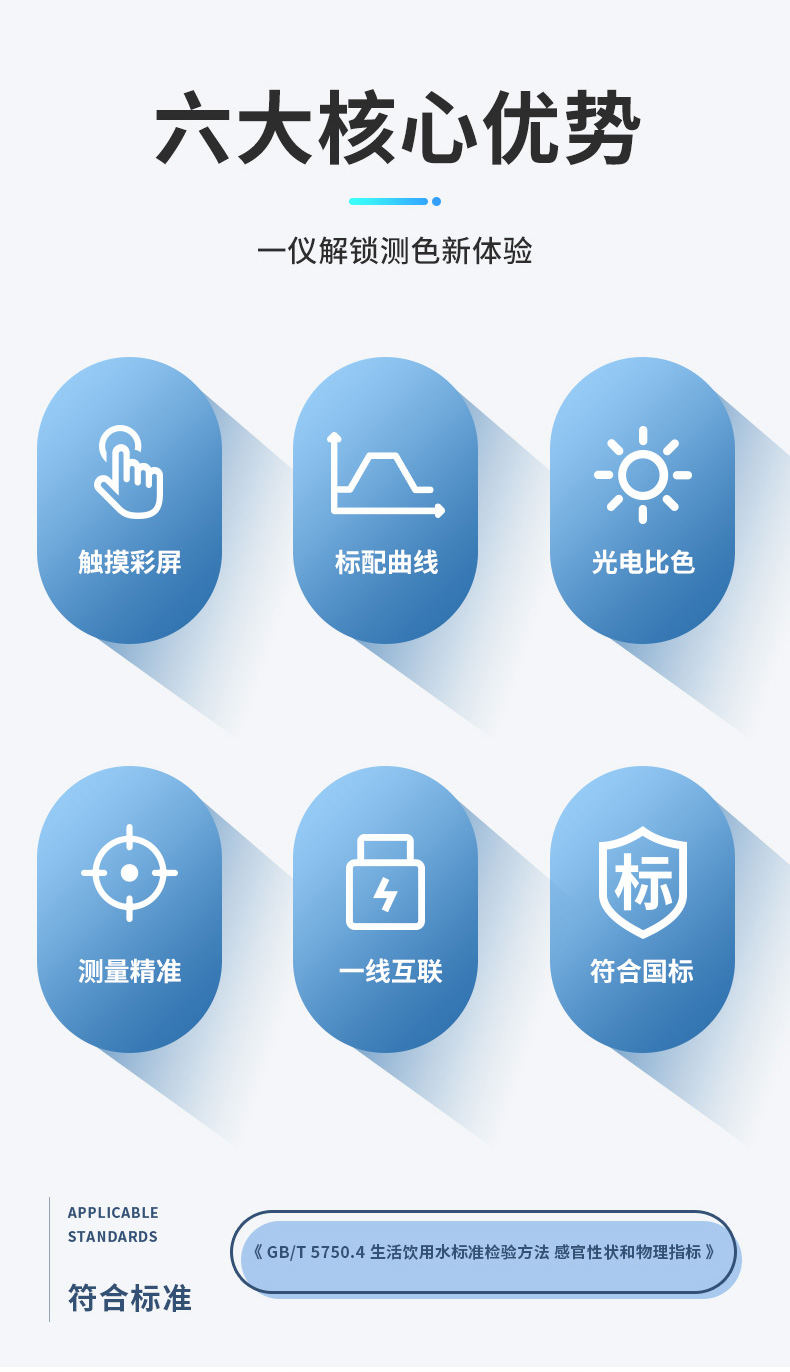 聚创JC-SD-100A型台式色度仪利用铂—钴色度标准溶液进行标定,以“度”作为色度计量单位,具有体积小、重量轻、操作简便、灵敏度高等特点。可以广泛用于发电厂、纯净水厂、自来水厂、生活污水处理厂、饮料厂、环保部门、工业用水、制酒行业等部门的色度测定,从而达到规定的水质标准。