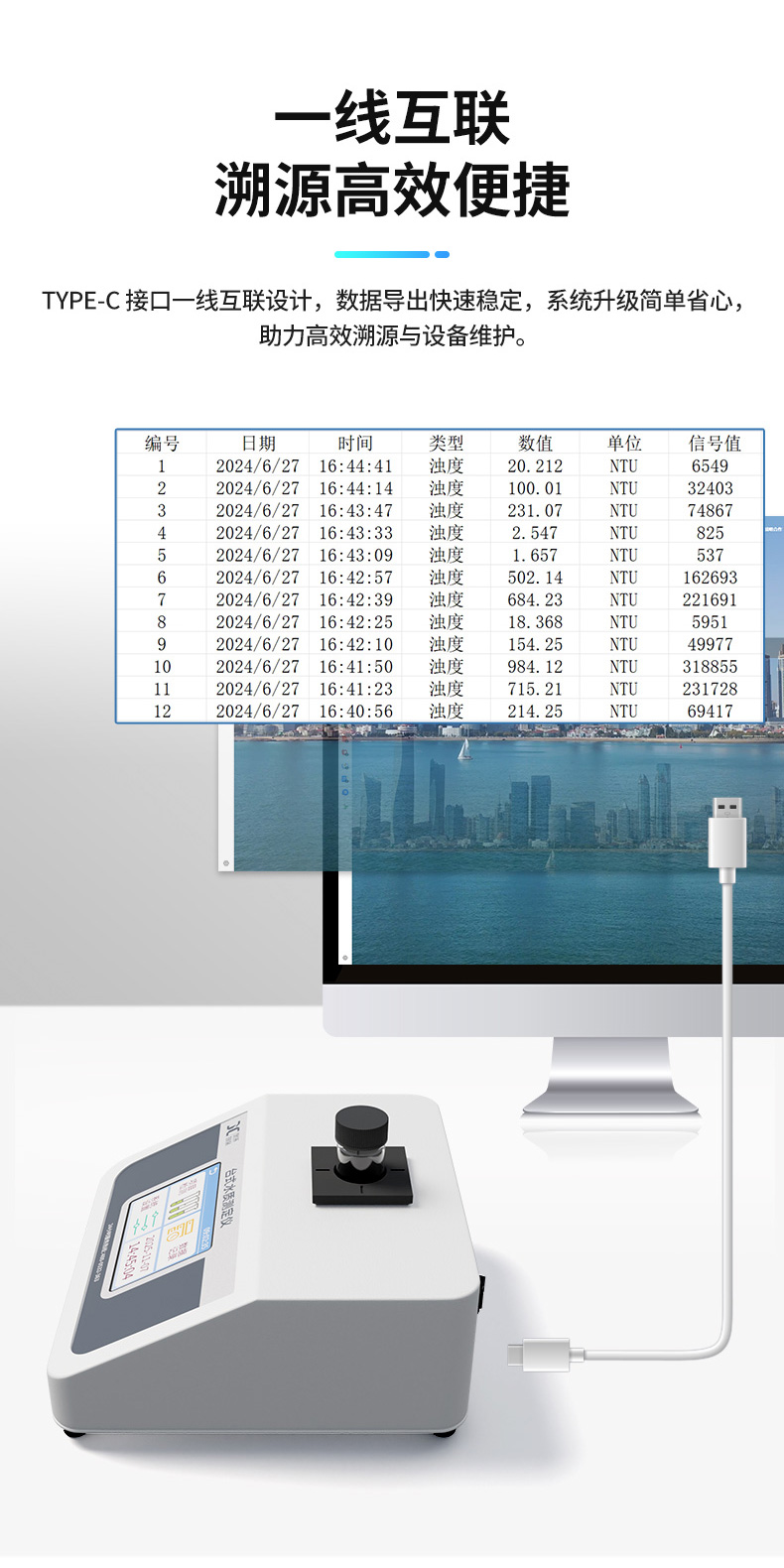 2.分辨率:低量程0.01NTU,高量程0.1NTU;