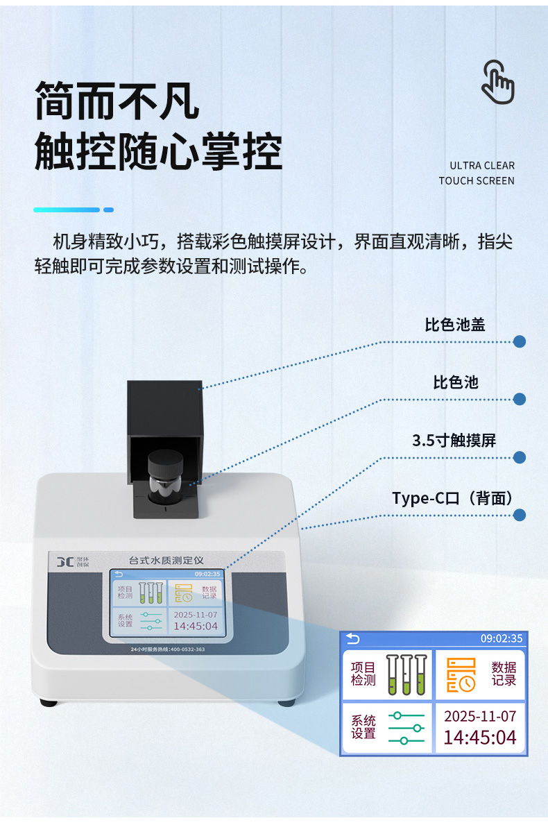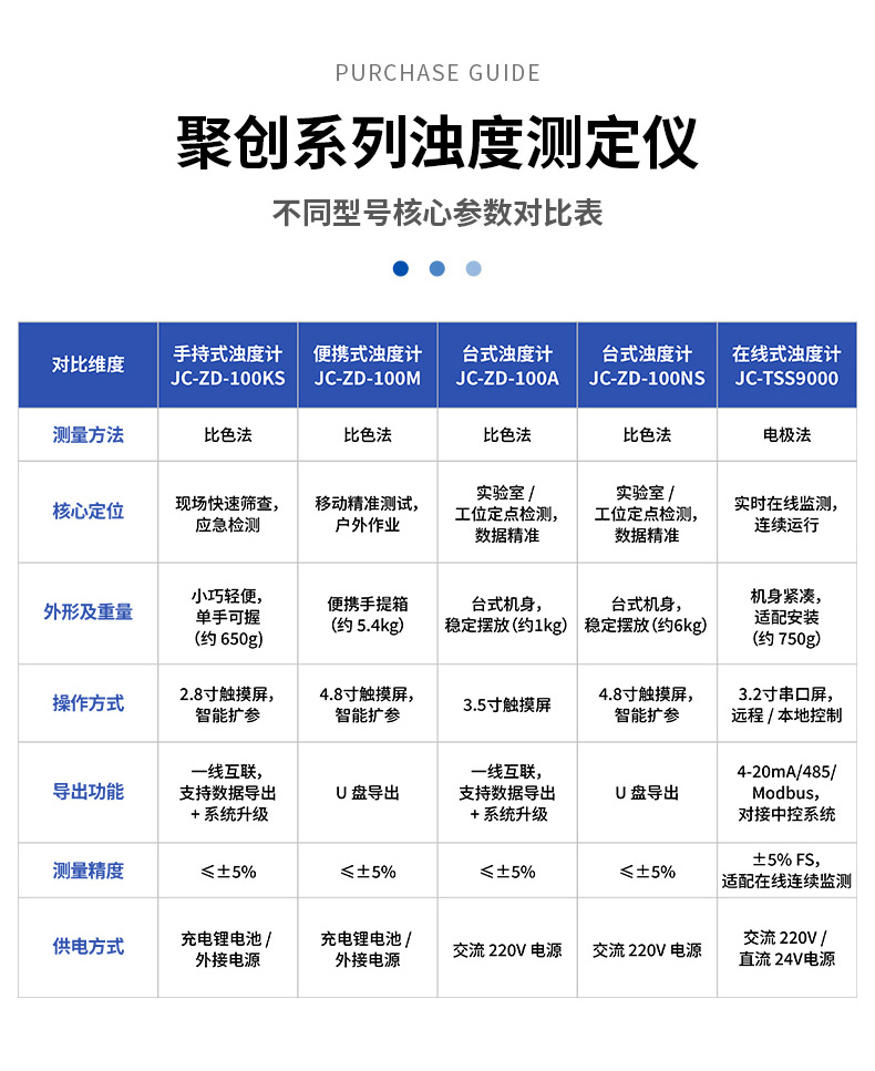 聚创JC-ZD-100A型台式浊度计用于测量悬浮于水或透明液体中不溶性颗粒物质所产生的光的散射程度,并能定量表征这些悬浮颗粒物质的含量。 可以广泛应用于发电厂、纯净水厂、自来水厂、生活污水处理厂、饮料厂、环保部门、工业用水、制酒行业等部门的浊度测量。