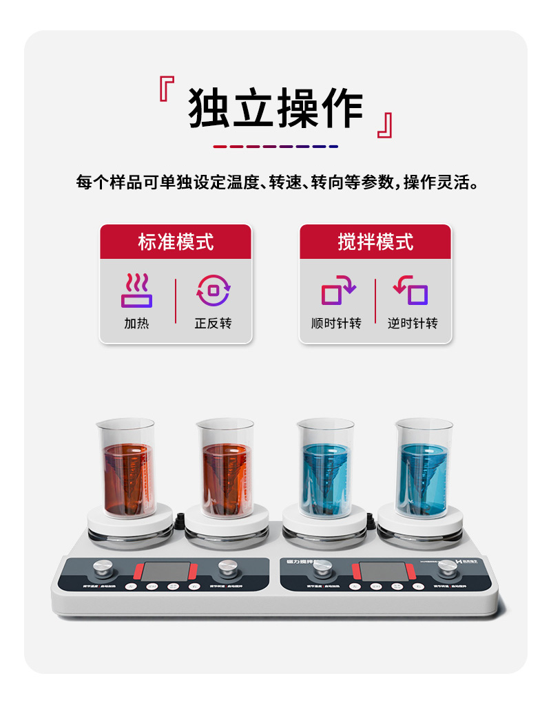 H-HJ型高温数显磁力搅拌器是一款专为实验室精密样品处理设计的一体化设备,集高效加热、独立搅拌、智能控制、精准控温于一体,可广泛应用于化学合成、生物实验、样品检测等领域,满足多样品并行处理、高稳定性实验条件的核心需求,是实验室常规加热搅拌操作的优选工具。