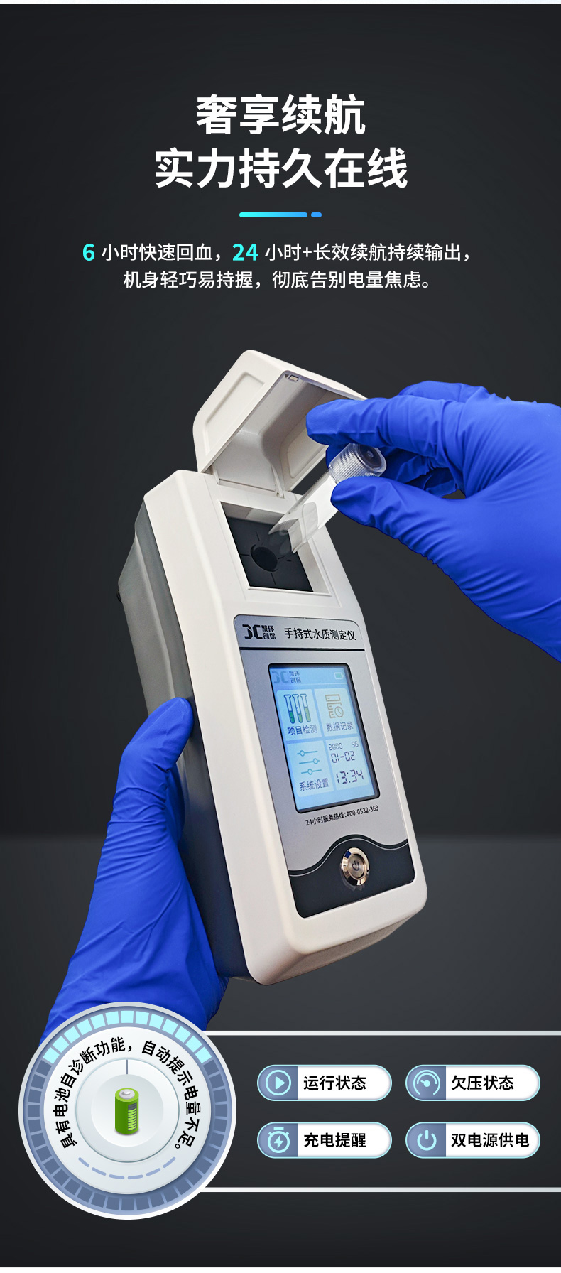 聚创JC-TN-KS型手持式总氮测定仪采用变色酸分光光度法,具有体积小、重量轻、操作简便、灵敏度高等特点。可以广泛用于发电厂、纯净水厂、自来水厂、生活污水处理厂、饮料厂、环保部门、工业用水、制酒行业等部门总氮参数的测定,从而达到规定的水质标准。